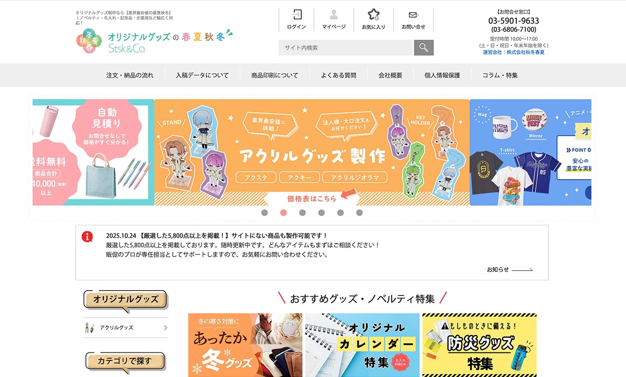 株式会社 秋冬春夏様は、ノベルティ、記念品、企業用グッズなどのオリジナルグッズ制作を専門とされている企業です。